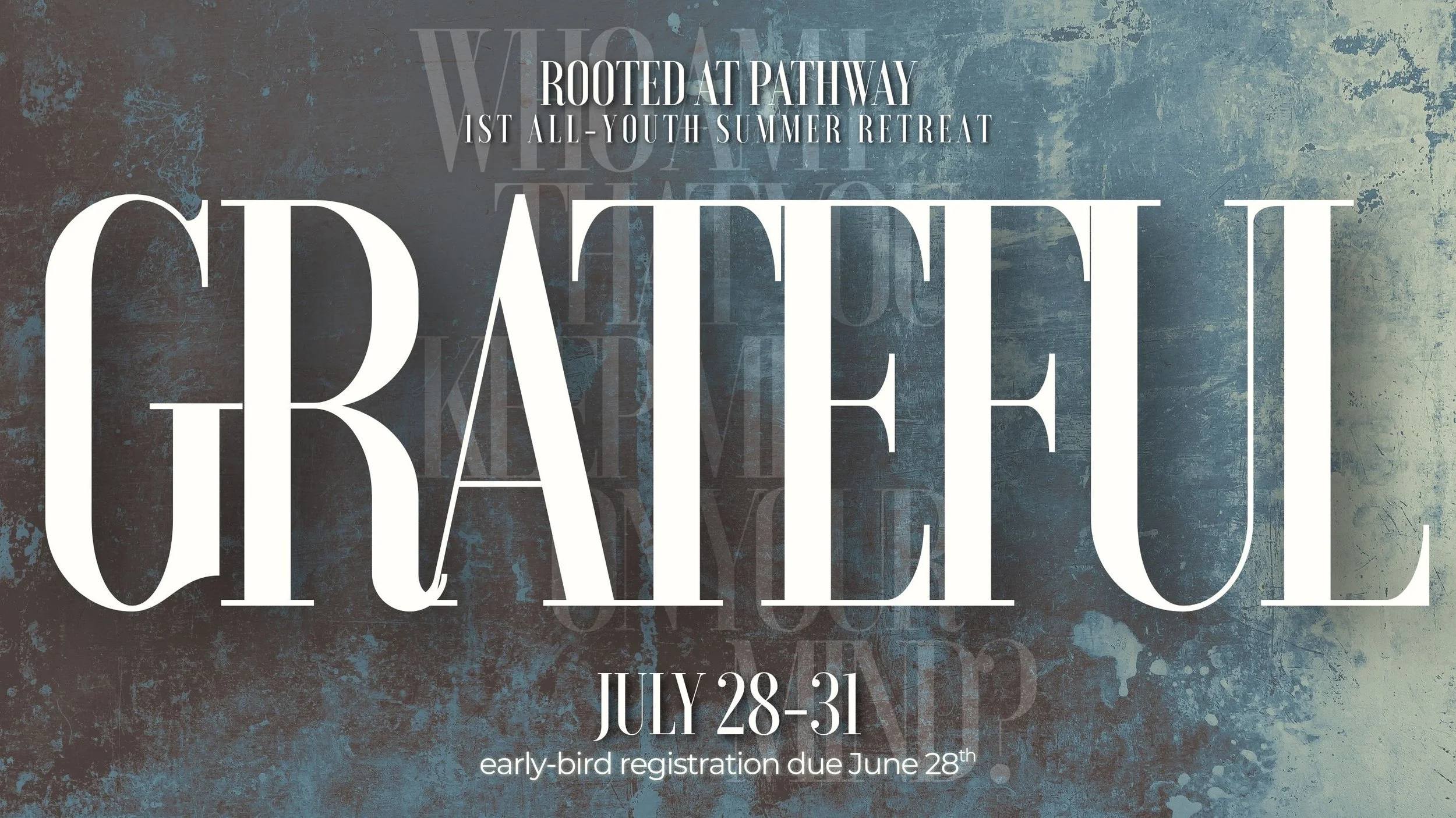 Please submit the registration form into the mailbox next to the Youth Lounge entrance by June 28th for the early bird pricing. Contact Pastor Bill at billkim@pathwaybible.org for questions.Early pricing is due June 1st! Registration forms can be found in the link below, or physically at the adults’ welcoming team table.